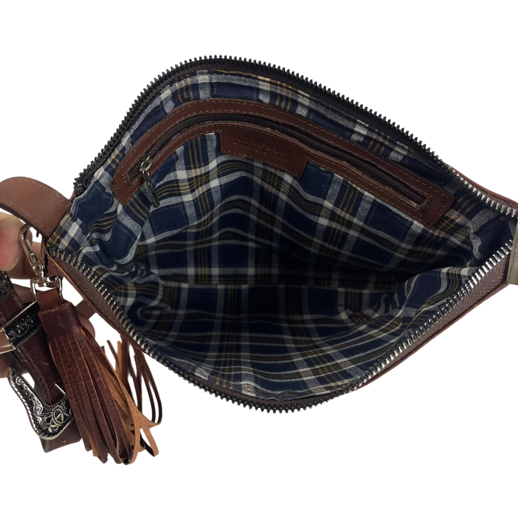 Feita em couro legitimo bovino, forrada em tecido por dentro. Possui alsa com jogo de fivela estilo western.