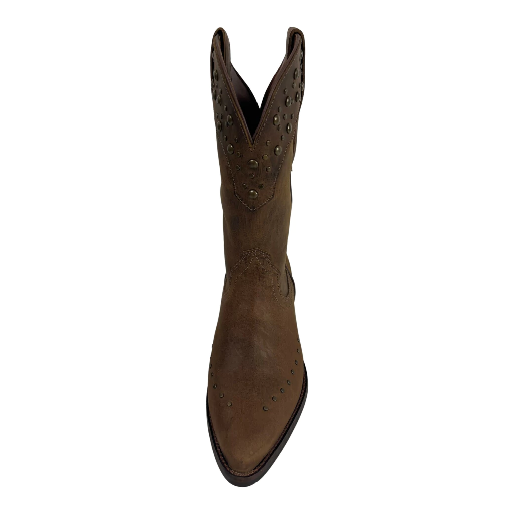 Bota fabricada em couro legitimo bovino. Pé na cor Fossil Castanho com apliques de taxinhas.