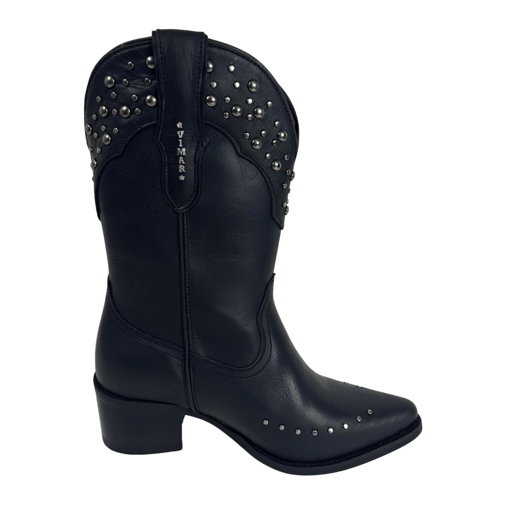 Cano médio na cor Fossil Preto com aplique de taxinhas, puxador na cor Fossil Preto.