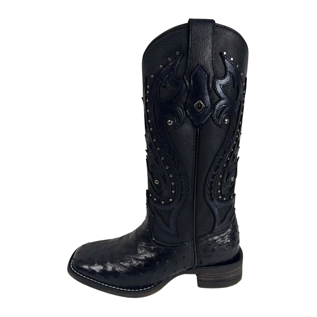 Cano fabricado em couro legitimo bovino alto na cor Discovery Preto com detalhes em couro na cor Metal Black, com bordados e aplique e taxinhas.