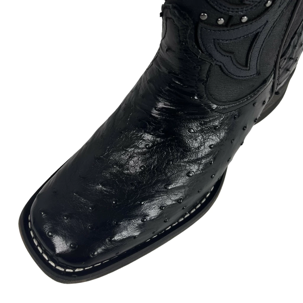 Pé fabricado em couro de Avestruz legitimo na cor preta.